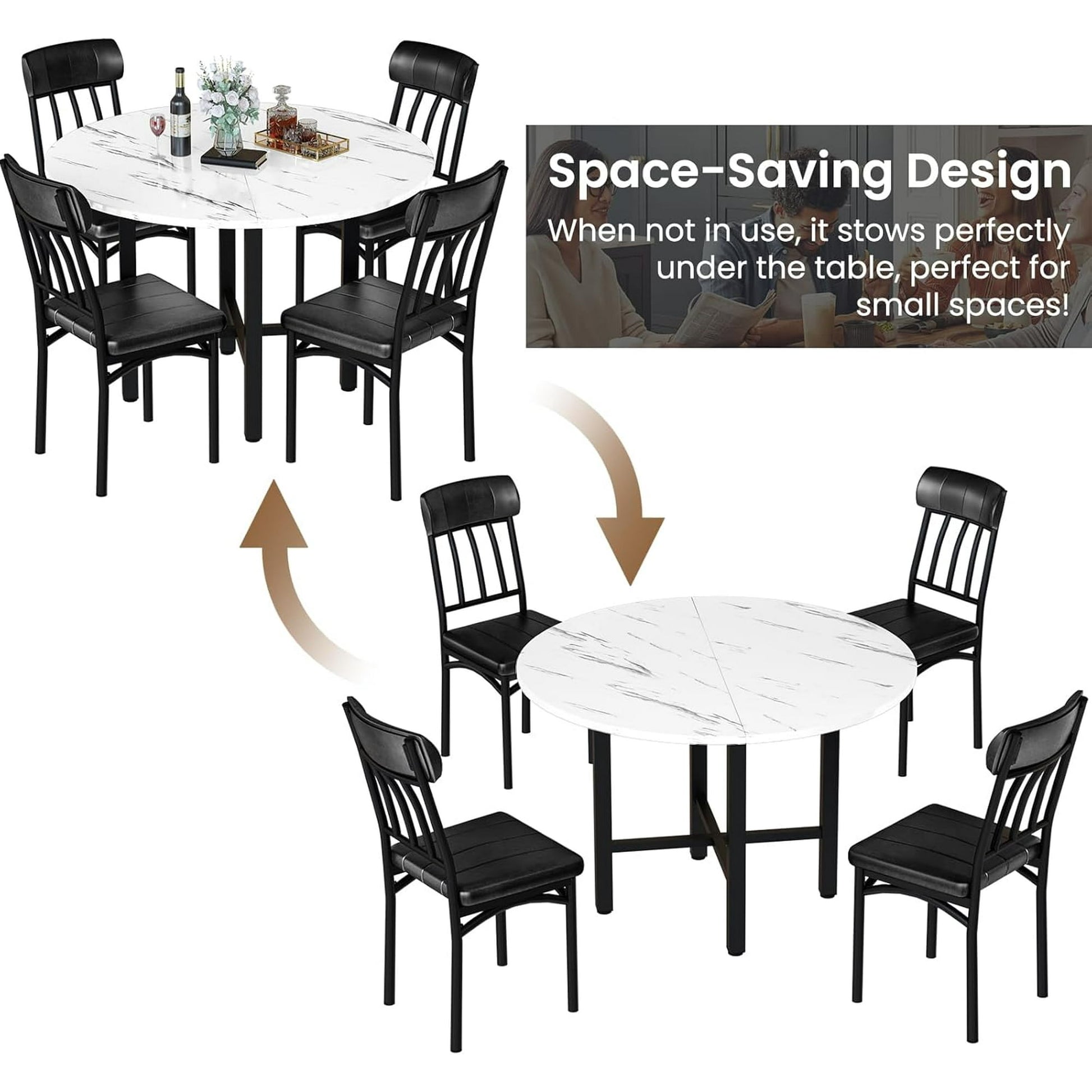 Lamerge Round Dining Table Set for 4,Wood Round Kitchen Table and Chairs Set for 4,Modern Dining Room Table Set with 4 Faux Leather Chairs,Round Dinner Table for Small Space,White+Black